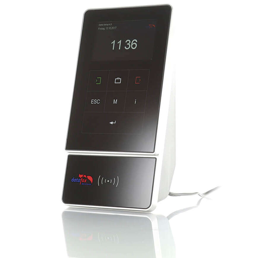 Onze Datafox EVO 4.3 terminal is een echte alleskunner met een aluminium frame, een robuust hard glazen oppervlak dat vrij door u ontworpen kan worden en een aanpasbare toetsenbord indeling! De Datafox 4.3 is niet alleen geschikt voor tijdregistratie, maar kan ook uitstekend ingezet worden voor project registratie. De terminal kan voorzien worden van een ingebouwde toegangscontrole module voor maximaal 8 deuren.